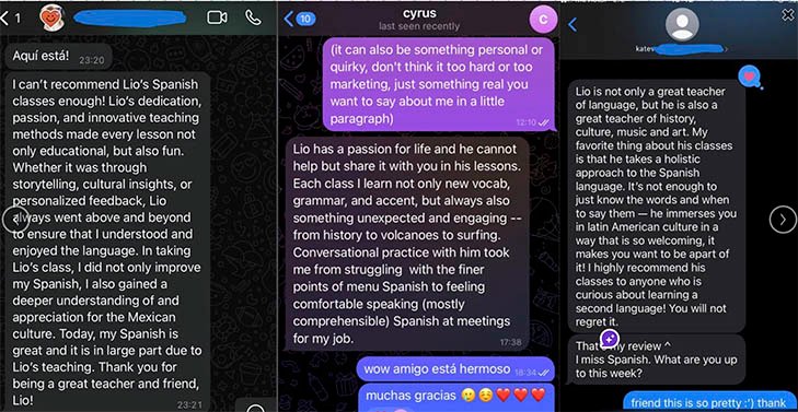 I can’t recommend Lio’s Spanish classes enough! Lio’s dedication, passion, and innovative teaching methods made ever lesson not only educational, but also fun.